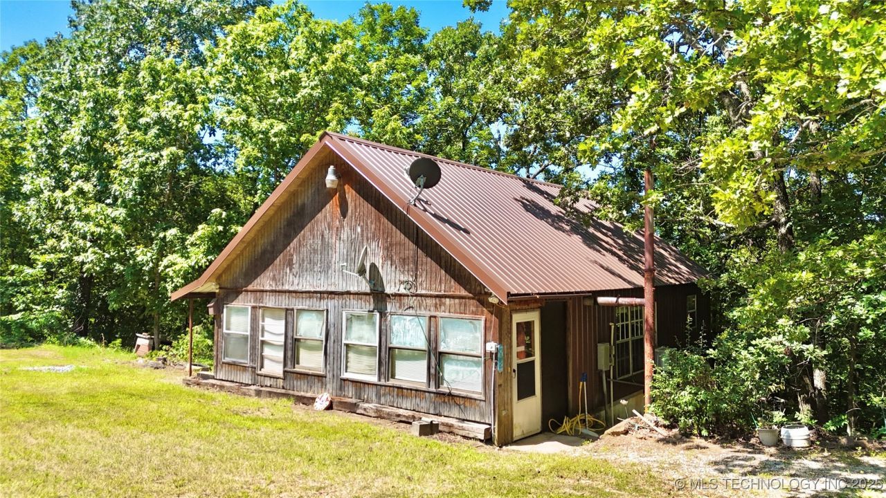 Escape the hustle and bustle of everyday life with this charming custom-built cabin, perfectly situated on 10 acres of pristine land in Gore, Oklahoma. This property offers a unique blend of comfort, privacy, and natural beauty, making it an ideal retreat for nature lovers or those seeking a peaceful lifestyle. The cabin features one spacious bedroom with ample natural light, a full bathroom designed for convenience, and a loft area that can serve as an additional sleeping space or office. Inside, vaulted ceilings enhance the open feel of the living space, creating an inviting atmosphere perfect for relaxation and gatherings. Step outside to enjoy a generous deck with stunning views of the surrounding landscape, along with an attached shop made with durable metal trusses, ensuring both strength and longevity. The shop is fully equipped with electricity, a kitchenette, and a bathroom, making it a versatile space for various activities. It also includes a storage loft at the north end, providing ample room for hobbies or storage needs. The picturesque terrain gently slopes down to a wet-weather creek, offering opportunities for exploration. Outdoor enthusiasts will appreciate the abundant wildlife in the area, including trophy whitetail deer and native wild turkey, making this a prime location for hunting. Additionally, the property is just a short distance from the Arkansas River, offering excellent fishing opportunities for both novice and experienced anglers. Nature lovers will also enjoy the variety of trees on the property, including pear and plum trees, as well as hickory, adding to the charm and ecological diversity of the landscape. This secluded cabin is a rare find, promising an exceptional lifestyle in the heart of Oklahoma while still being close to essential amenities. Whether you're looking for a cozy weekend getaway or a full-time residence, this property is the perfect escape into nature.