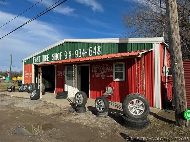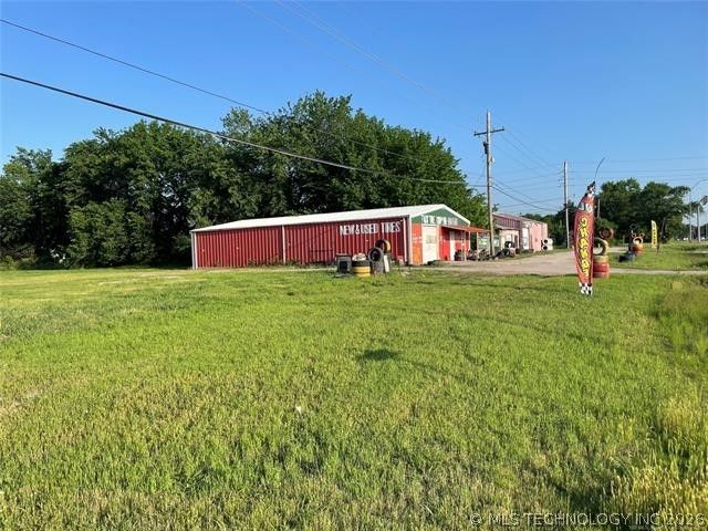 Here's an opportunity to own 5 lots + 1998 built metal shop, used to be an automotive/tire shop on with approx. 270 ft of HWY 75 frontage. Room to expand, build another building or add parking/food truck space. Zoned Urban Commercial, this property offers opportunity for growth in a high traffic area of Okmulgee. Directly across from Love's.