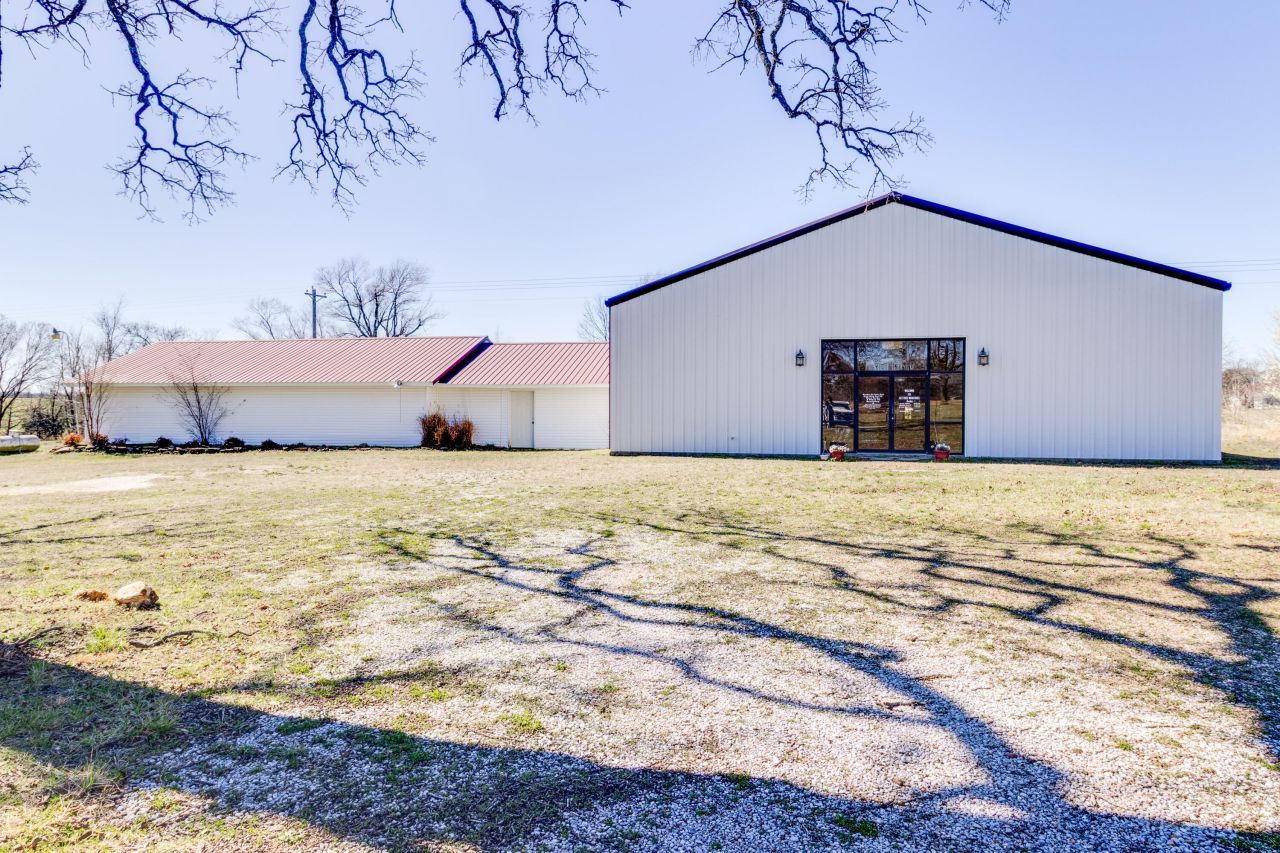 Positioned directly along Highway 60 in Wyandotte, this 7,000+ sq ft property offers exceptional visibility with steady regional traffic from NE Oklahoma, NW Arkansas, SE Kansas, and SW Missouri. Originally built as a church, the property includes a 2015 addition featuring the main sanctuary hall, lobby, office space, and restrooms, along with the original layout that includes classrooms/offices, kitchen, and flexible meeting spaces. The open layout and high ceilings create endless possibilities for event space, venue, studio, community center, or business use. Situated on 1.85 acres outside city limits, the property provides room to expand with fewer restrictions. Conveniently located less than half a mile from Indigo Sky Casino, offering strong regional visibility and accessibility.