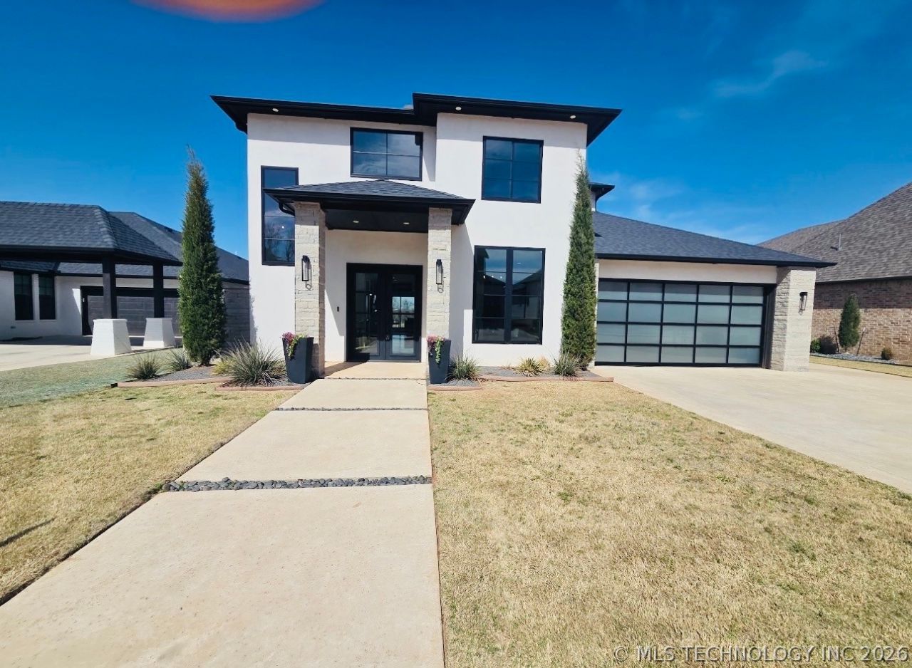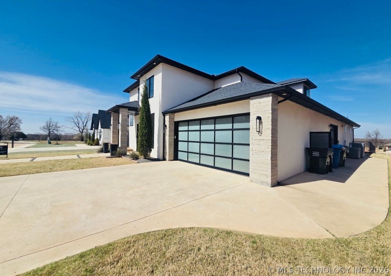 Welcome to this beautiful Home by Huelskamp Luxury Homes located in the new Wiregrass section of Oak Tree Country Club. Wiregrass is a unique pocket of 54 lots on the west side of Edmond's premiere country club neighborhood. 2109 Wiregrass Drive is the Sawgrass plan and is built on an interior courtyard lot. Modern and contemporary in design, this plan is versatile and spacious. High end finishes and features including custom built cabinetry with soft close doors and drawers; Emtek door hardware; quartz counters and backsplash; wood flooring; wet bar with beverage fridge and ice maker; designer lighting, railings and plumbing fixtures; and free standing tub and walk-in shower in master suite. Exterior elements include glass garage doors, iron double door, Anderson windows and 15 foot wide sliding patio door, features expansive living spaces, extensive concrete patio and a fully fenced yard, perfect hosting for gatherings, yet still charming and cozy for enjoying relaxing time at home. Golf course community, come see today!