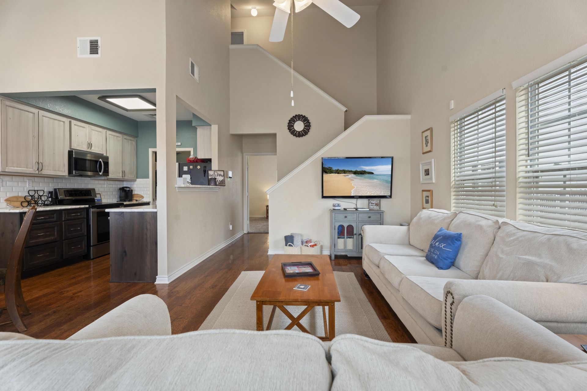 Spacious 3 bed, 3 bath condo on Monkey Island offering a comfortable layout, great location, and strong investment potential. This home features dual master suites, each with its own private en suite bathroom, ideal for guests or maximizing rental flexibility. The open-concept living area flows into a generously sized backyard space, perfect for relaxing or entertaining. This property is short-term rental friendly, making it a great option for a vacation home or income-producing property. Conveniently located just 1 mile from a public boat ramp and Quarterdeck Café and approximately 5 miles from Shangri-La Resort, which can be accessed by golf cart by the Monkey Island path. Enjoy easy access to nearby restaurants, nightlife, and entertainment, all just a golf cart ride away. Community a.. Community amenities include a swimming pool, fitness center, basketball court, fire pit, RV and boat storage, and a dog park.