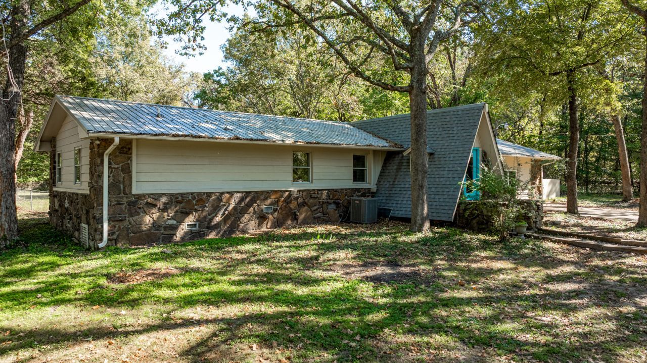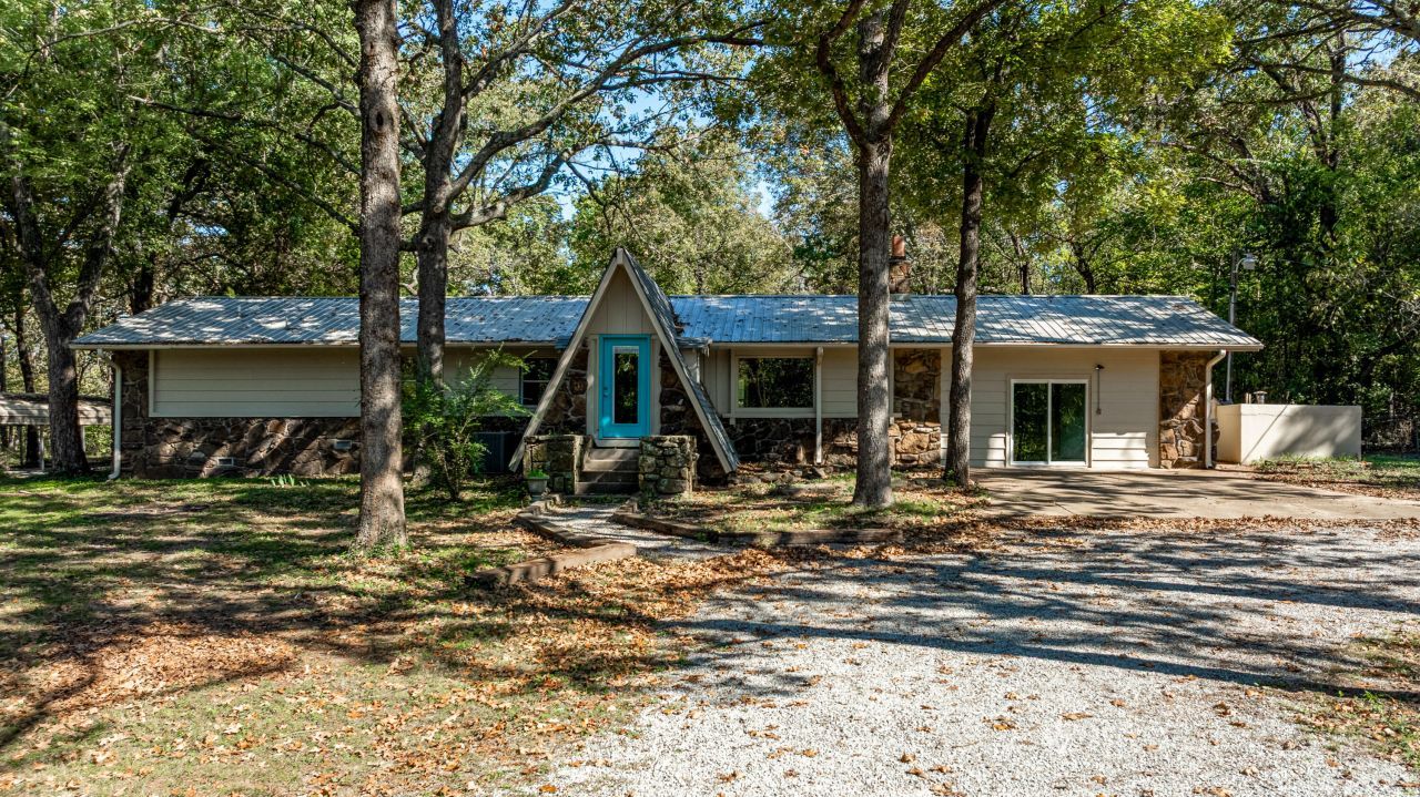 QUIET AND PEACEFUL OASIS...this beautiful property offers a comfortable country lifestyle and convenient location on 1.5 acres just minutes from Walmart, Lowes, and everything Grove has to offer. This newly remodeled 4 bedroom 2 bathroom home boasts two spacious living areas along with a cozy wood-burning fireplace and an open-concept layout seamlessly connecting the living, kitchen, and dining areas. Notice new flooring, paint, lighting fixtures, stainless refrigerator and range. The master suite is large and comfortable while three additional bedrooms offer versatility for guests or a home office. The property also features a detached 24'x30' garage/shop as well as a detached 18'x20' two-car carport, a walk-in above-ground cellar/safe room accessible from inside the home, two hot- water heaters, newer HVAC, and a metal roof. Enjoy this serene outdoor oasis complete with a new deck/back patio area creating a tranquil retreat for relaxation and enjoyment along with modern amenities, including electrical services provided by Rural Electric Cooperative (REC) and BOLT fiber-optic internet for reliable connectivity. (All measurements approximate).