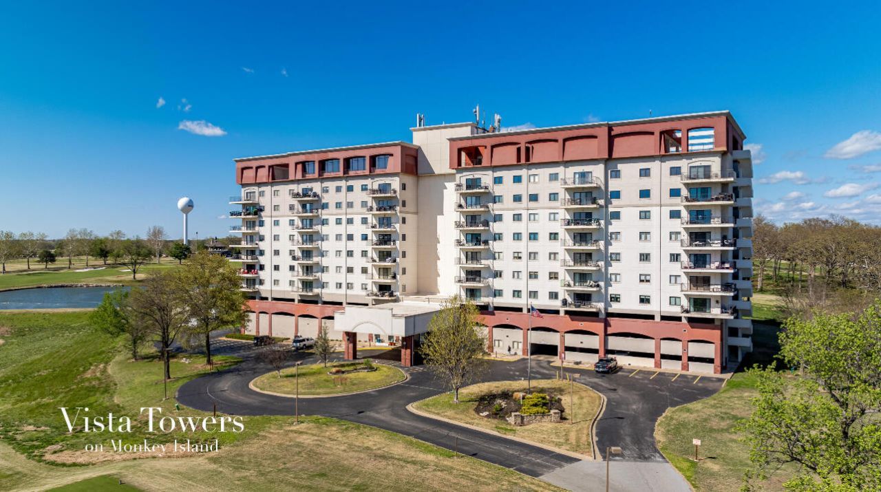 Desired 7th-floor corner unit in Vista Tower featuring breathtaking panoramic views of Grand Lake and Shangri-La's premier golf course. This highly sought-after location offers exceptional scenery and convenience, placing you in the heart of Monkey Island while still providing a peaceful retreat above it all. Perfectly positioned to take full advantage of the resort lifestyle and provides one of the best vantage points in the area for the island's spectacular firework show. Enjoy effortless access to everything Shangri-La Resort has to offer, all within a short walk or quick golf cart ride, including upscale and casual dining, nightlife, live entertainment, and a wide variety of recreational activities. Spend your days on the water with nearby boat and jet ski rentals, or take in... the views from above with parasailing adventures. Short-term rental friendly, this property presents an excellent opportunity for both personal enjoyment and income potential. Community amenities include a fitness center with sauna, an in-ground pool, and a spacious banquet hall ideal for hosting gatherings, events, or private functions.