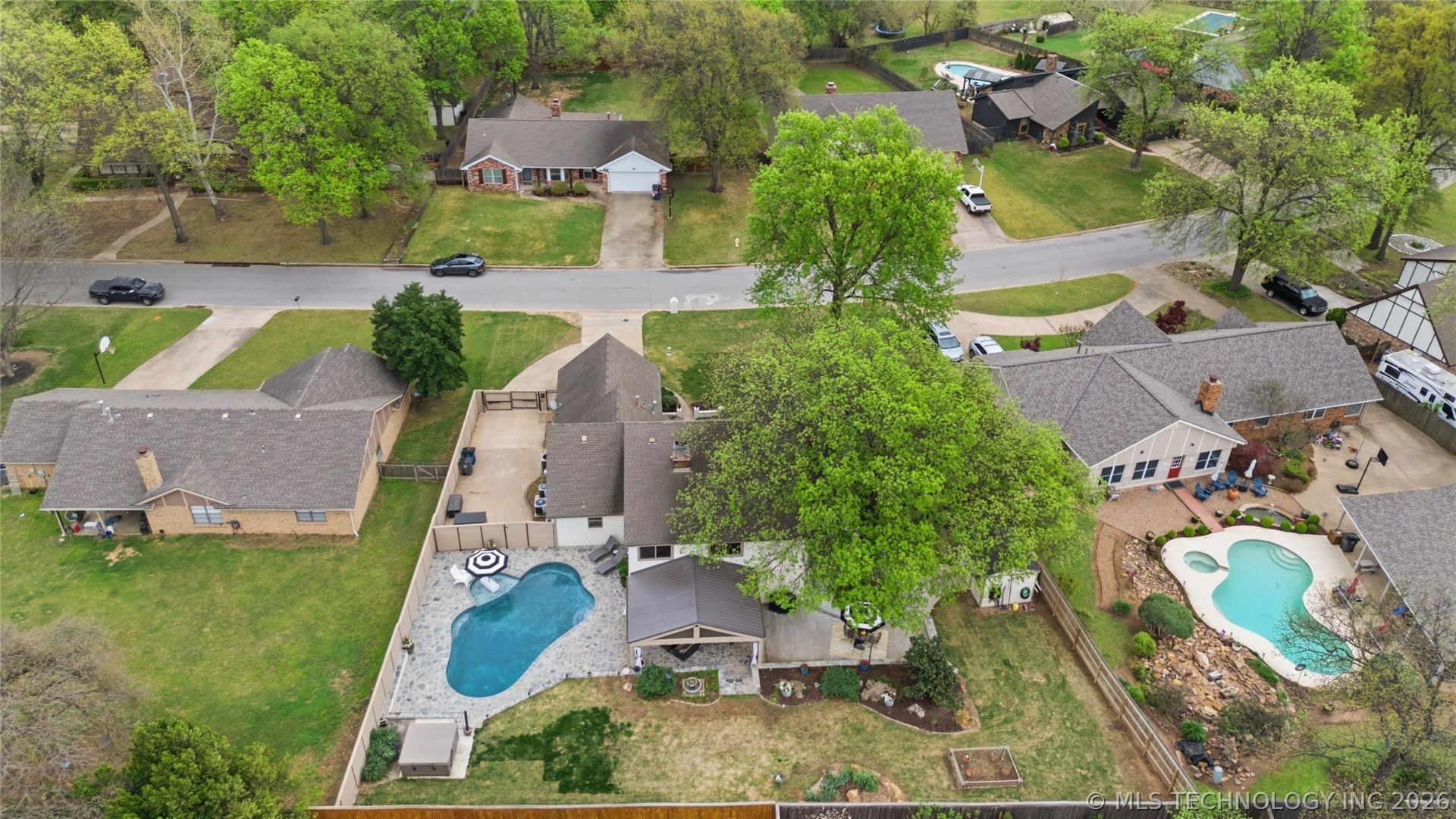 *COMING SOON* No showings nor offers until 4/7/2026! Stunningly renovated home in the heart of South Tulsa, located within the highly sought-after Jenks School District. This exceptional property offers the perfect blend of comfort, style, and resort-style living. Step outside to your private backyard oasis, featuring a Gunite pool, relaxing hot tub spa, and a covered patio complete with gas heaters-ideal for year-round enjoyment. The elegant bluestone paving enhances the outdoor experience, while a secluded retreat just off the primary bedroom provides the perfect space for morning coffee or peaceful evenings. Inside, the home welcomes you with a warm and inviting layout. Enjoy a formal dining room, a cozy family room with a fireplace, and a beautifully vaulted kitchen designed for both everyday living and entertaining. An additional den or sunroom offers incredible flexibility- perfect as a lounge, game room, office, or creative space. Upstairs, a versatile bedroom with en-suite bath can function as a second primary suite, -mother-in-law suite, private guest quarters, or spacious game room. This home stands out with numerous recent updates designed for long-term peace of mind, including a new roof, Hardie board siding, fresh exterior paint, new vinyl windows, a newly replastered Gunite pool, and a brand-new hot tub still under warranty. Additional features include an electric gate leading to extra parking and a dedicated RV/boat concrete pad. Ideally located near shopping, dining, and everyday conveniences, yet tucked away in a quiet, established neighborhood-this one-of-a-kind property truly has it all.